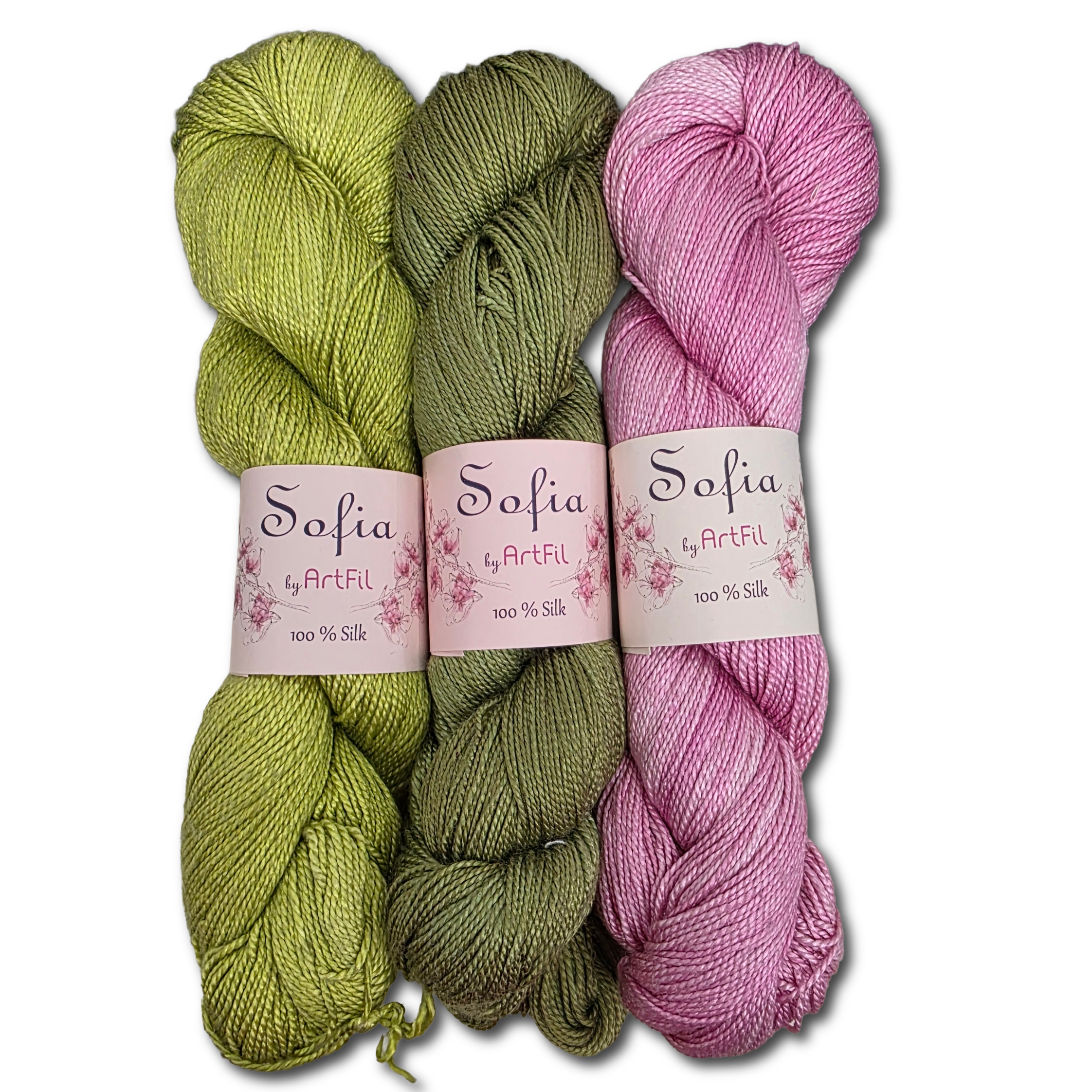 Artfil Sofia is a fingering-weight 100% mulberry silk yarn. It is as luxurious as it sounds!