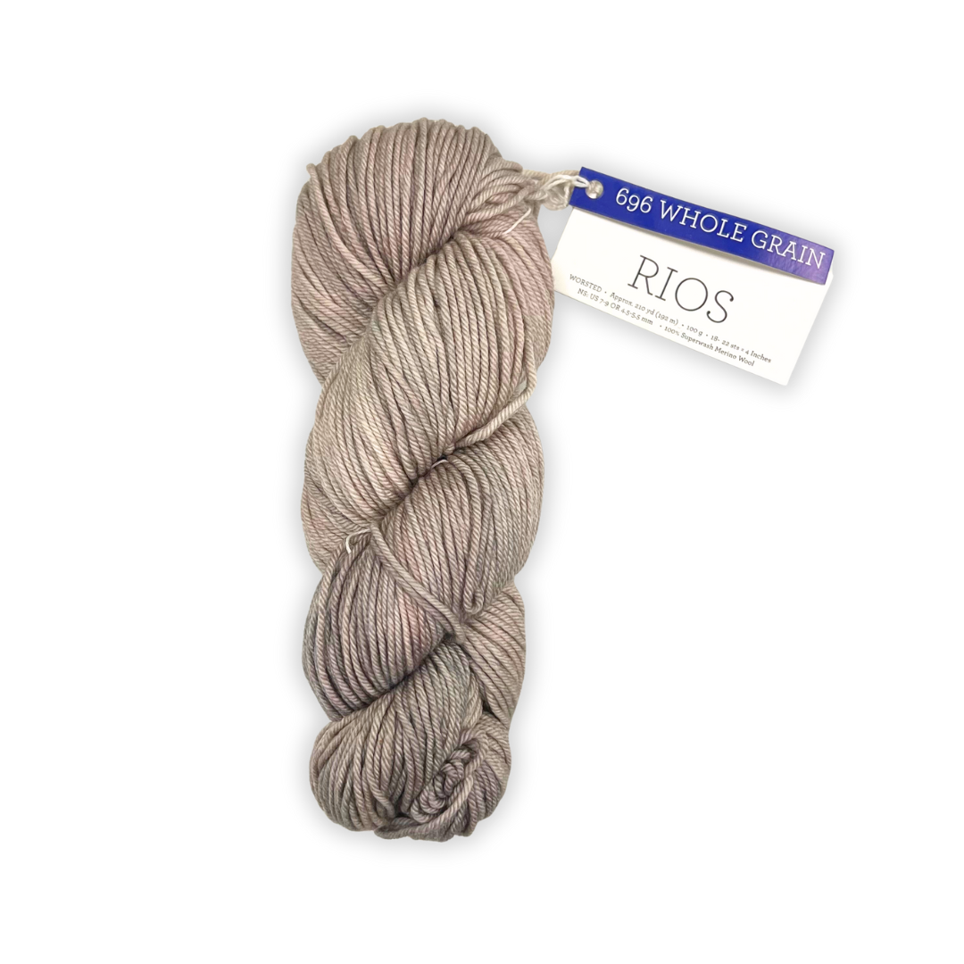 Malabrigo Rios is a worsted-weight superwash merino yarn. It has 4 plies and an even, round twist that knits up with a beautifully balanced stitch definition. (If you’ve been having trouble making your 1×1 ribbing look even, it’s not you! It’s the yarn. Rios will solve that problem for you.)