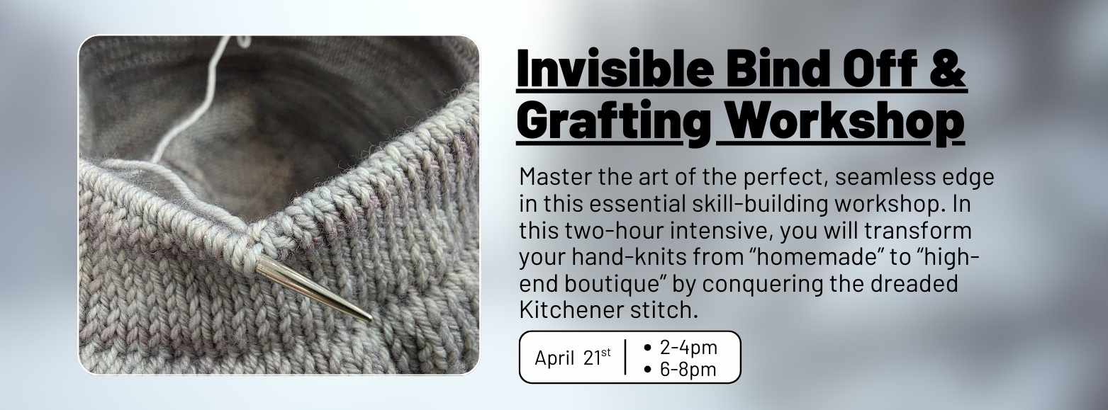 Slider Click Here Post By Jessica Stockbrugger February 23, 2026 Invisible Bind Off & Grafting Workshop
